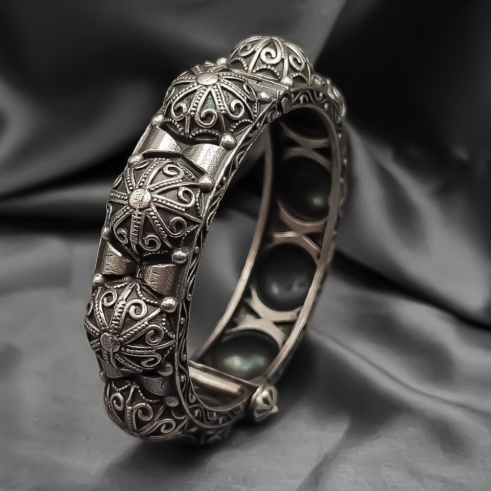 Silver Oxidized Indian Pakistani Afghani Ethnic Tribal Costume Jewellery. Designer Cuff Oxidized Silver Vintage Ethnic Tribal Bracelet