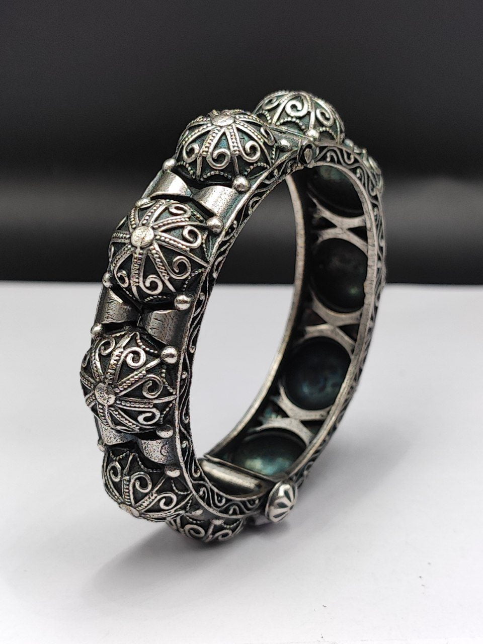 Traditional Oxidised Bracelet Navratri Special Free Size Bangle Kada Designer Brass Antique Openable Gypsy Silver Cuff