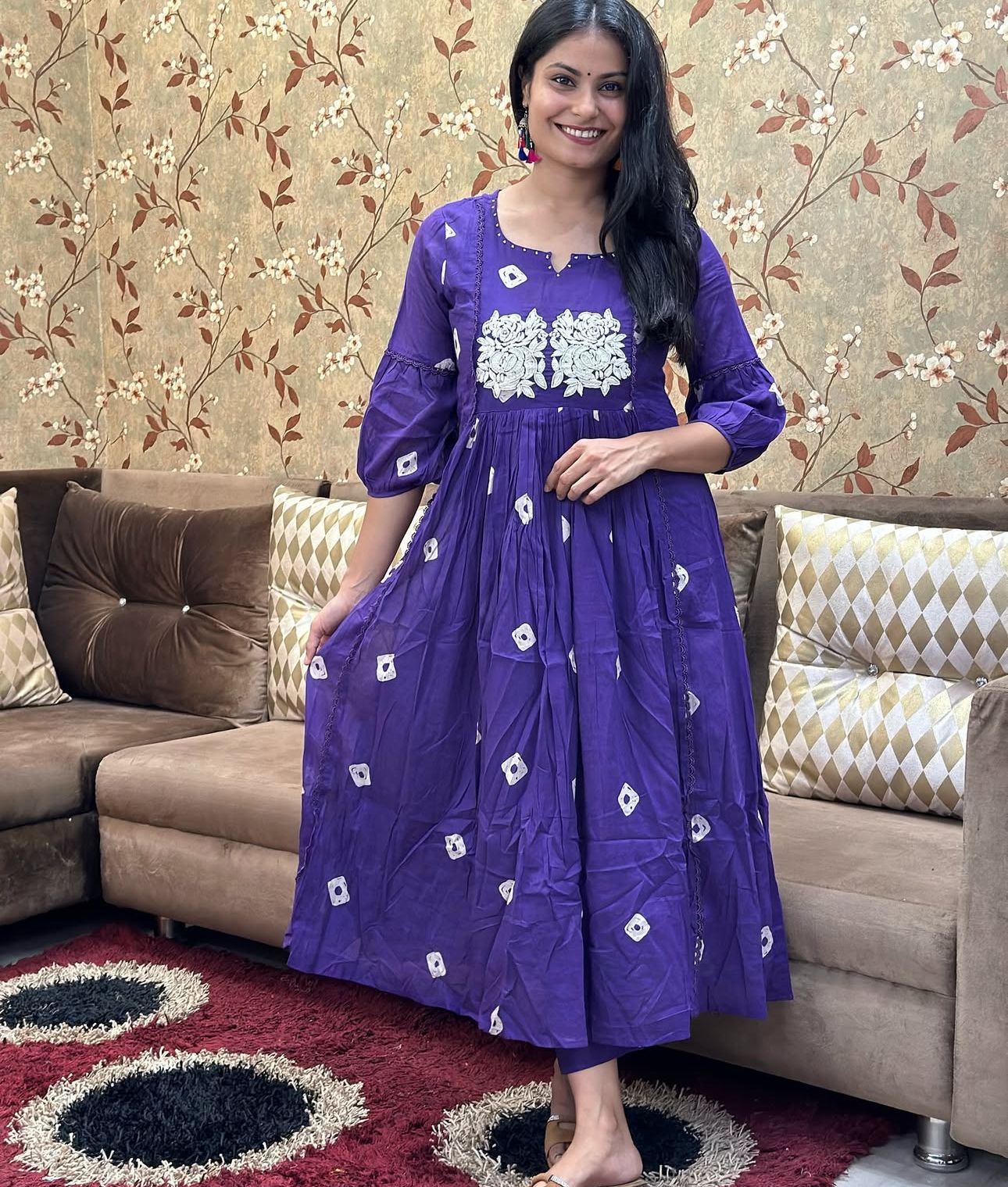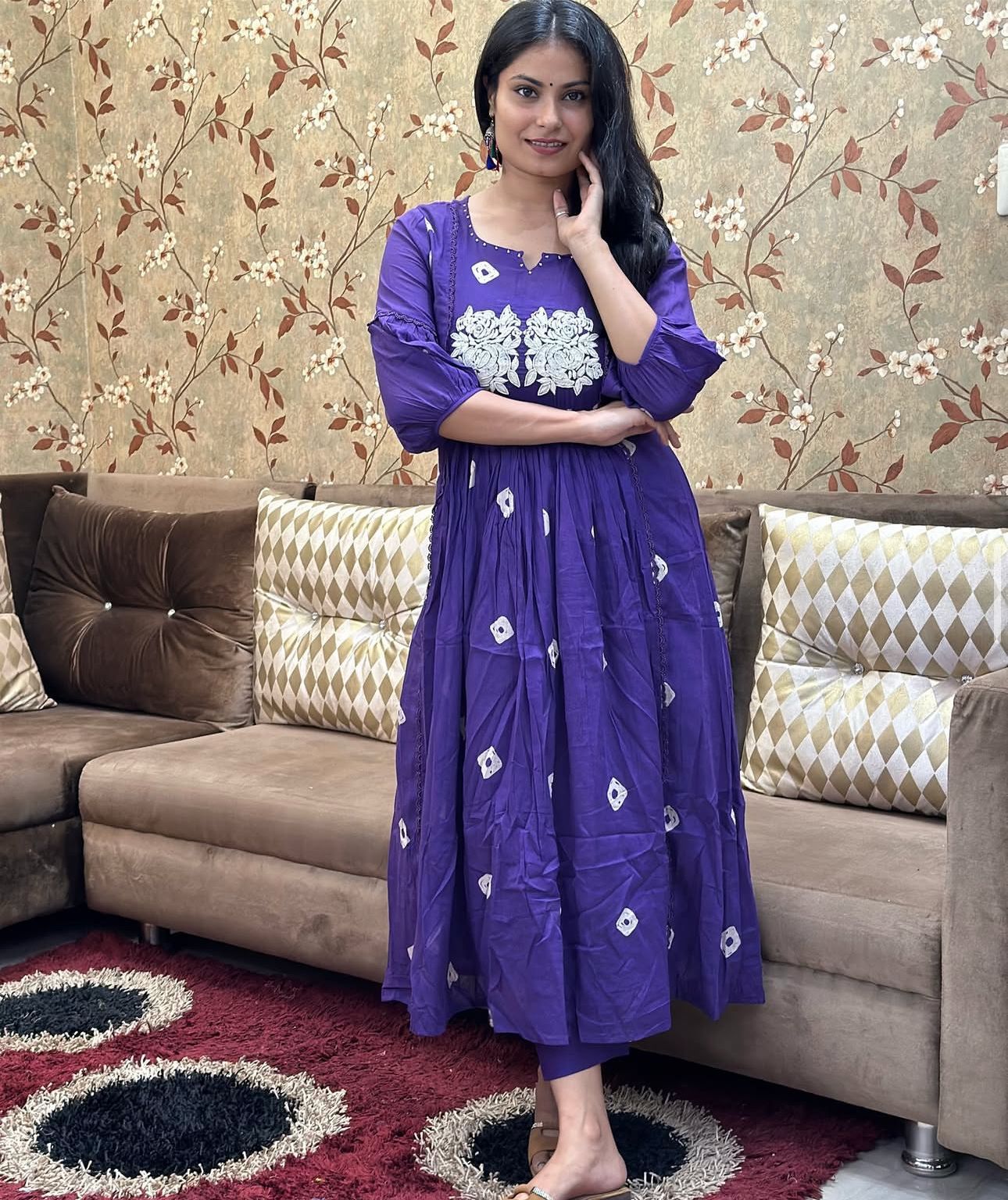 Elevate your ethnic wardrobe with this Blue Color Printed Embroidered Cotton Anarkali Kurti Pant Co-Ord Set. Crafted from premium cotton, the Anarkali kurti features intricate embroidery and delicate lace detailing, adding a touch of elegance. Paired with matching pants, this ensemble is perfect for festive occasions, casual outings, or family gatherings. Its breathable cotton fabric ensures comfort, while the stylish design enhances your look effortlessly. Experience timeless grace and modern charm with this beautifully crafted salwar kameez suit.