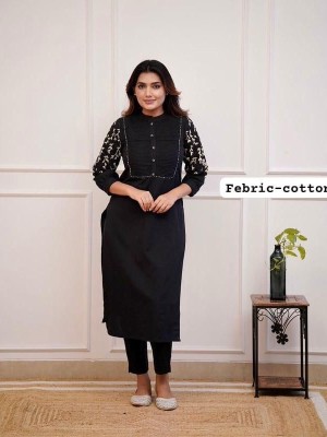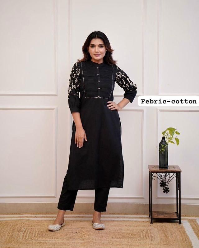 Black Trisha Floral Leaves Embroidered Co Ord Set Kurti Pant Set Indian Salwar Kameez Set (Set of 2)
