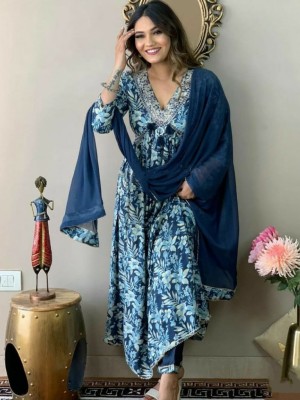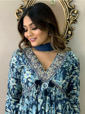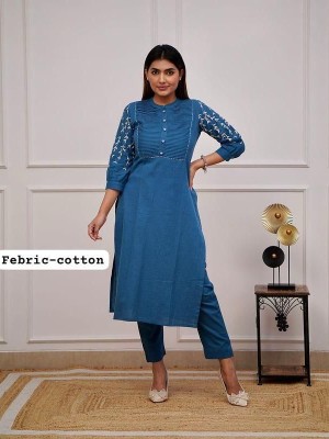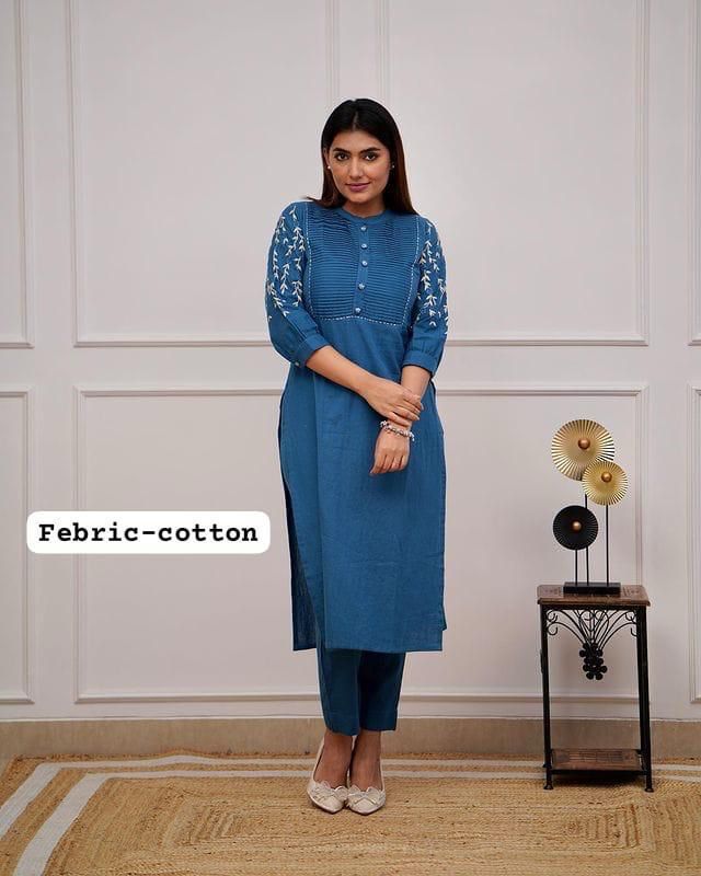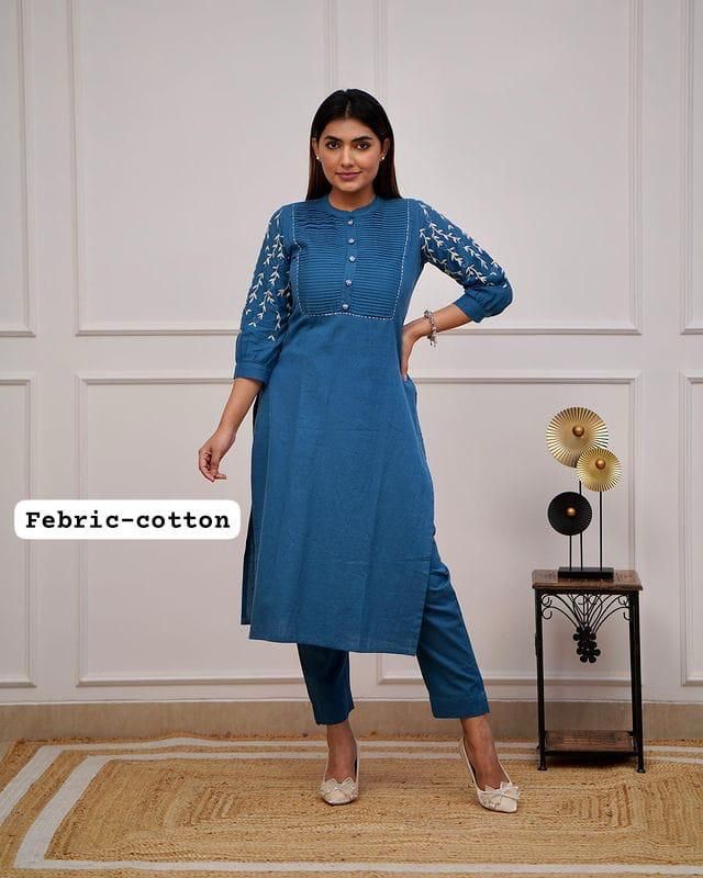 Teal Blue Trisha Floral Leaves Embroidered Co Ord Set Kurti Pant Set Indian Salwar Kameez Set (Set of 2)