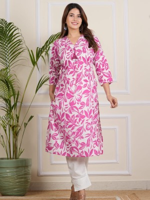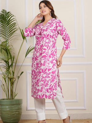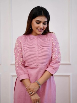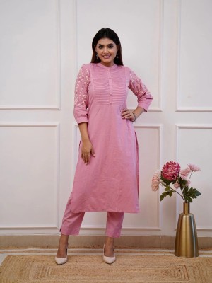• Pink Trisha Floral Leaves Embroidered Co Ord Set Kurti Pant Set Indian Salwar Kameez Set (Set of 2)