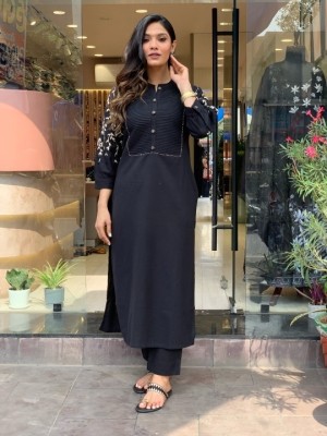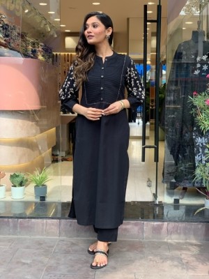 • Black Trisha Floral Leaves Embroidered Co Ord Set Kurti Pant Set Indian Salwar Kameez Set (Set of 2)