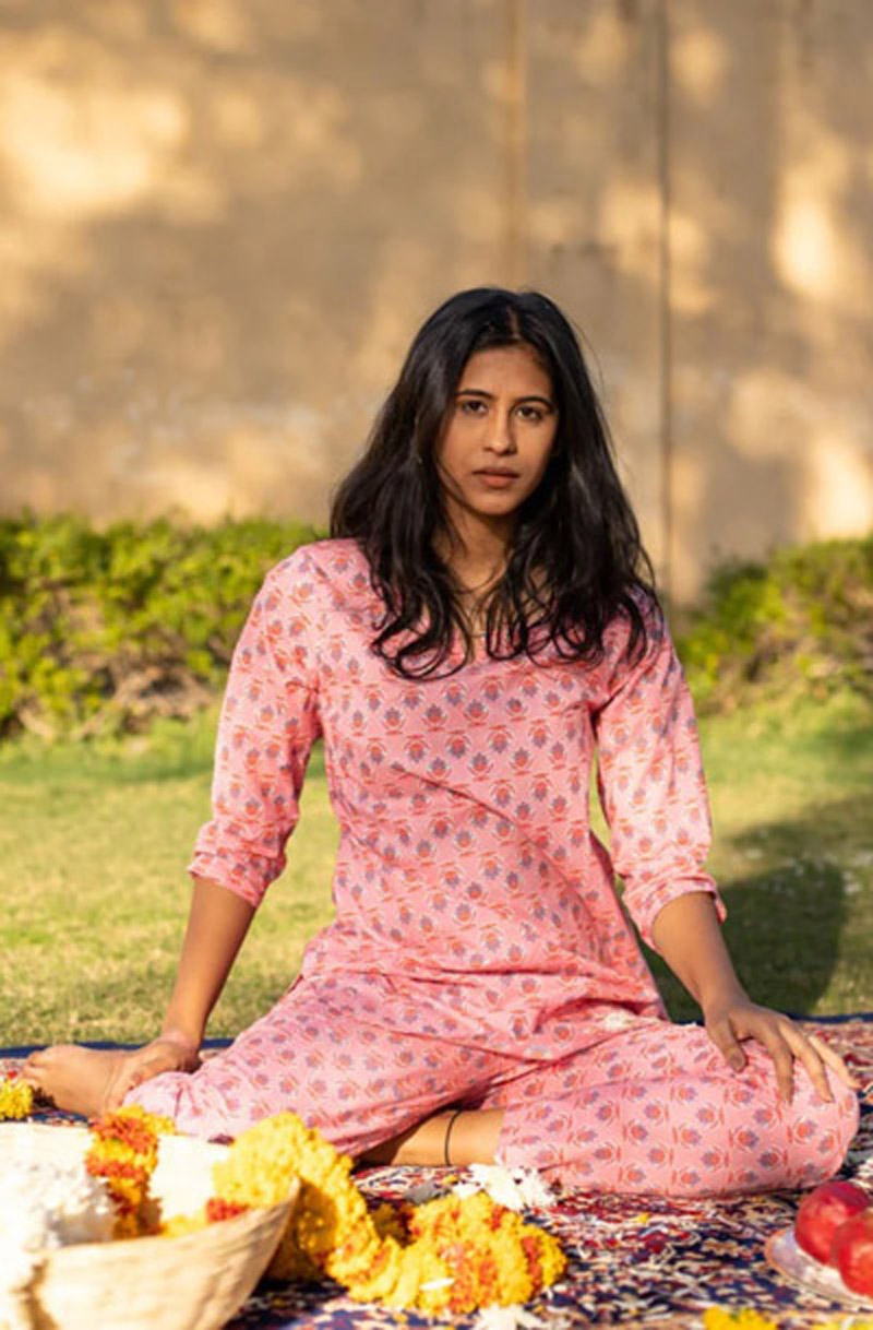 Elevate your relaxation with our Cotton Lounge Wear. Featuring a delightful Pink hue, this PJ is adorned with a charming floral motif print on a serene Pastel base. Crafted from premium cotton, it ensures unparalleled comfort and style. Ideal for lounging at home or casual outings, this night suit adds a touch of elegance to your everyday wear. Embrace the perfect blend of relaxation and sophistication with this beautiful ensemble.