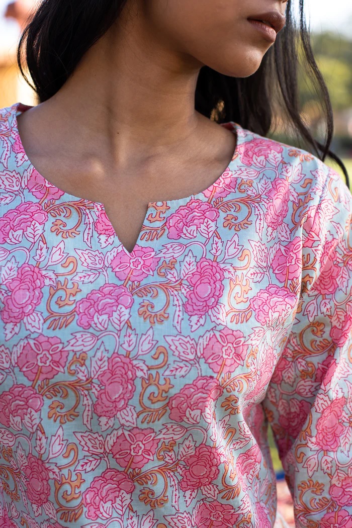 Pink Color Floral Block Print Lounge Wear Night Suit Dress Pyjama Co Ord Set for Summer Night PJ