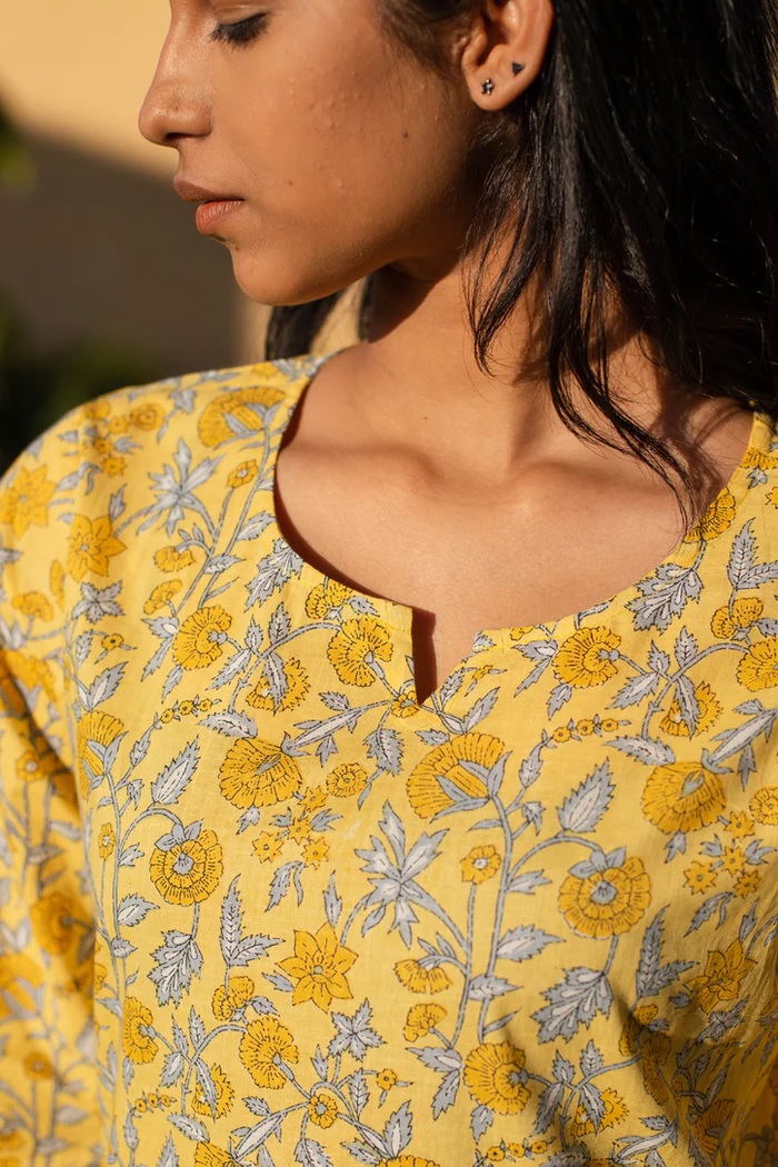 Elevate your relaxation with our Cotton Lounge Wear. Featuring a delightful Yellow hue, this night suit is adorned with a charming floral print on a serene Pastel base. Crafted from premium cotton, it ensures unparalleled comfort and style. Ideal for lounging at home or casual outings, this Pyjama set adds a touch of elegance to your everyday wear. Embrace the perfect blend of relaxation and sophistication with this beautiful ensemble.