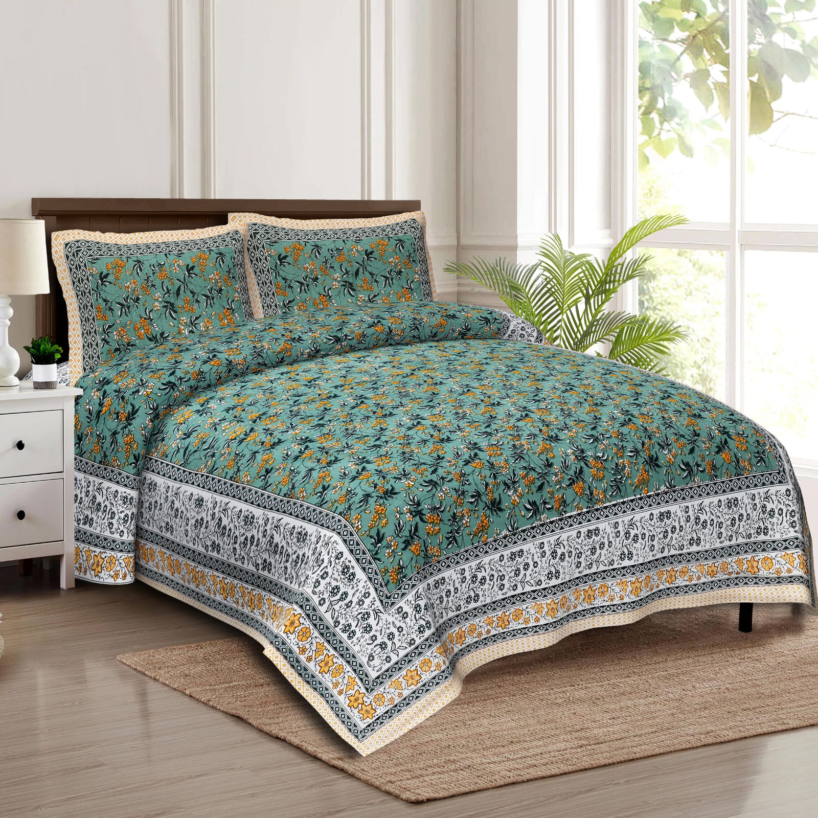 Ravishing Comfortable Floral Block Print Multi Color Cotton Bed Sheet with 2 Pillow Covers - for King Size Bed