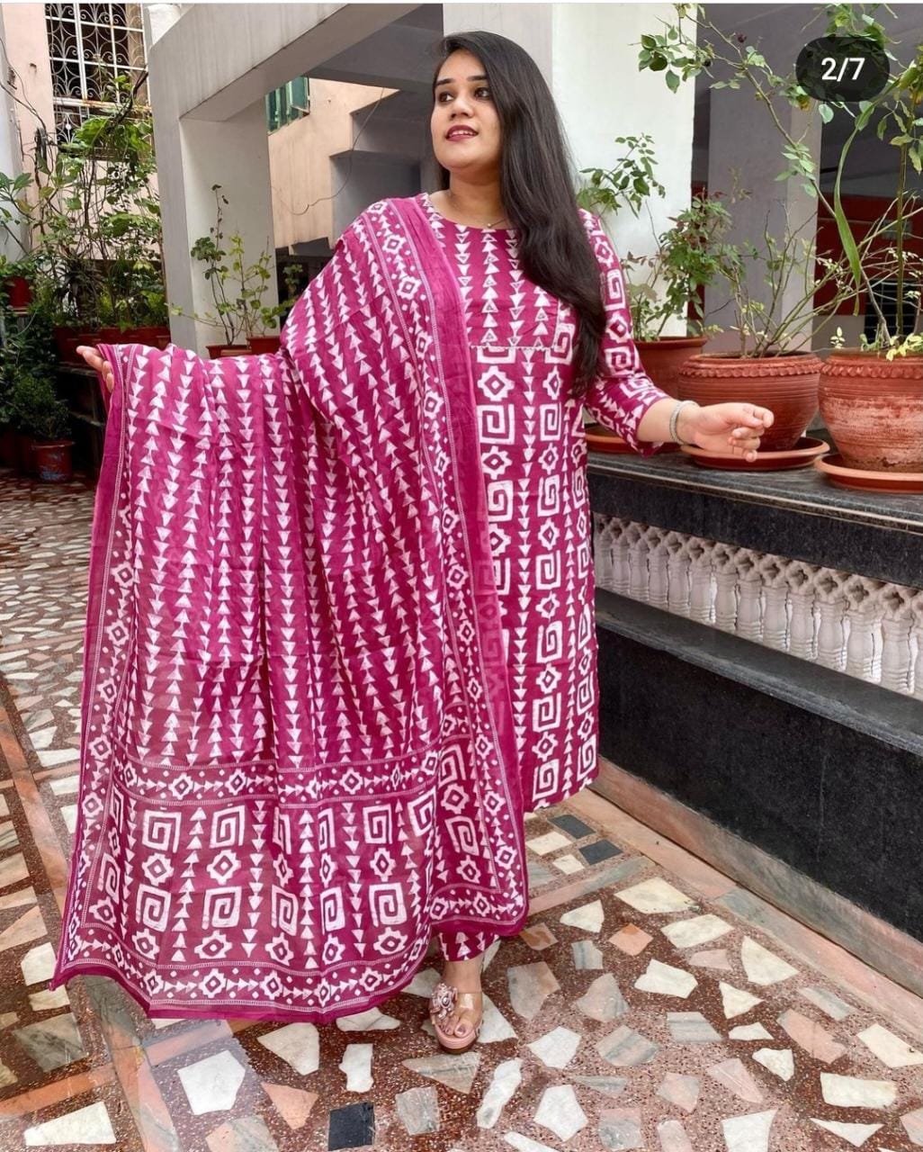 Enhance your wardrobe with our Printed Indian Straight Cotton Salwar Kameez Kurti Pant Dupatta Set for Women. Crafted from high-quality cotton, this set includes a straight-cut kurti, matching pants, and a stylish dupatta, all featuring intricate prints. Perfect for any occasion, this ensemble combines traditional charm with modern elegance, ensuring you look graceful and feel comfortable all day.