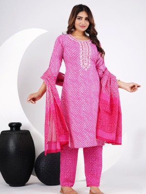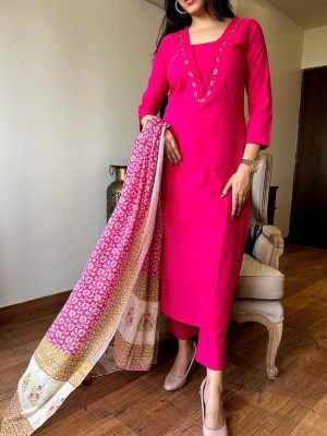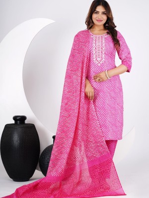 Pink Elegant Printed Indian Straight Salwar Kameez Kurti Pant Dupatta Set for Women