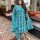 • Turquoise Blue Elegant Printed Indian Straight Salwar Kameez Kurti Pant Dupatta Set for Women