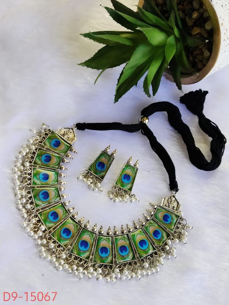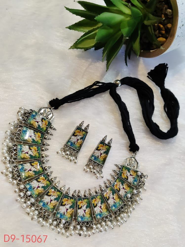 Design 1 Adjustable Silver Oxidized Bollywood Necklace Set Indian Traditional Choker set