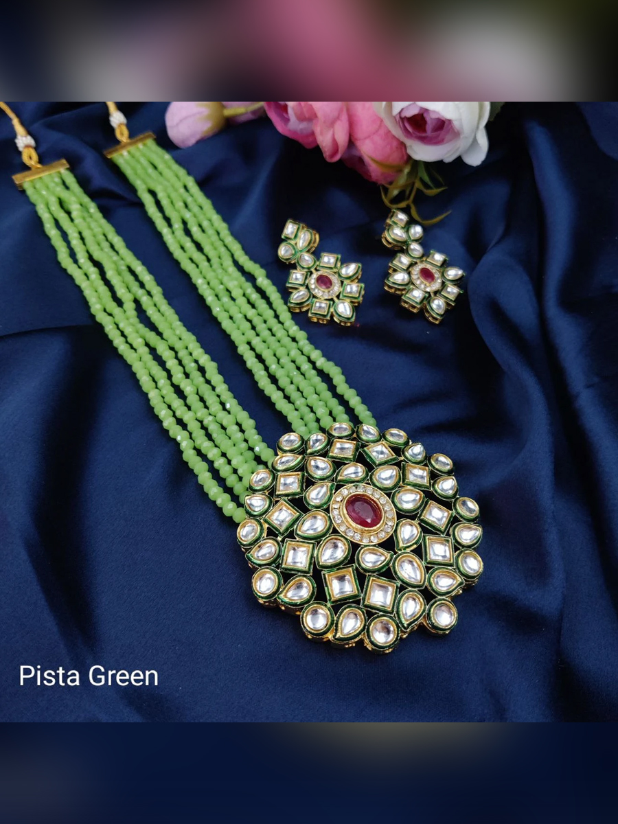 Pista Attractive Indian Bollywood Style Gold Plated Kundan Long Pendent Bridal Jewelry Necklace Earring Set