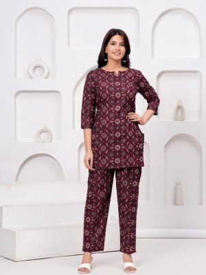 Brown Cotton Co Ord Set Dress Kurti Pyjama for Summer