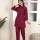 • Wine Solid Co Ord Set Kurti Pant Pakistani Readymade Embroidery Set for Women