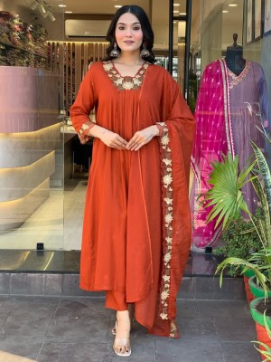 Zoya Anarkali Purple Color Cotton Printed Indian Traditional Salwar Kameez Kurti Pant Dupatta Set for Women