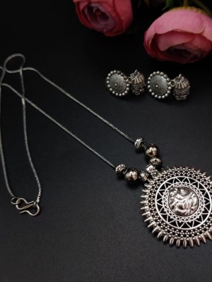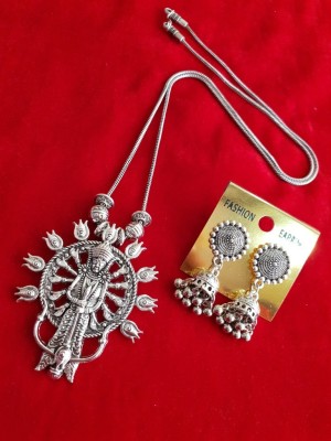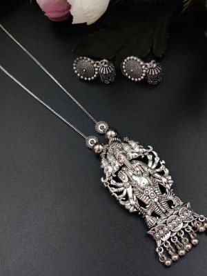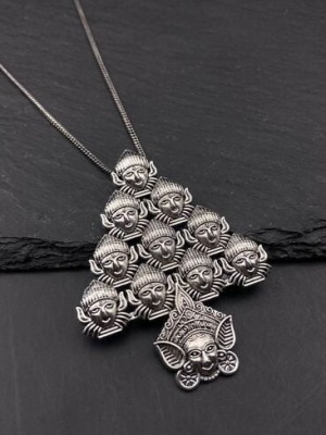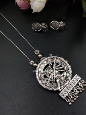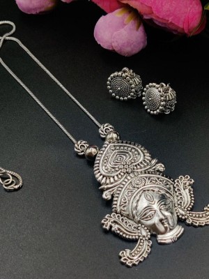 Oxidized Indian Goddess Durga Mata Pendent Necklace Chain Set Garba Navratri Jewellery