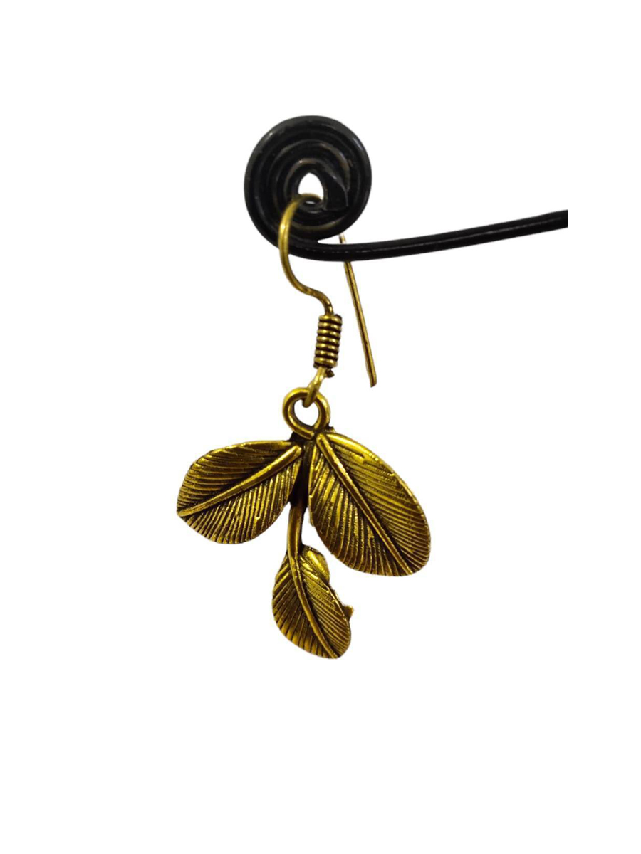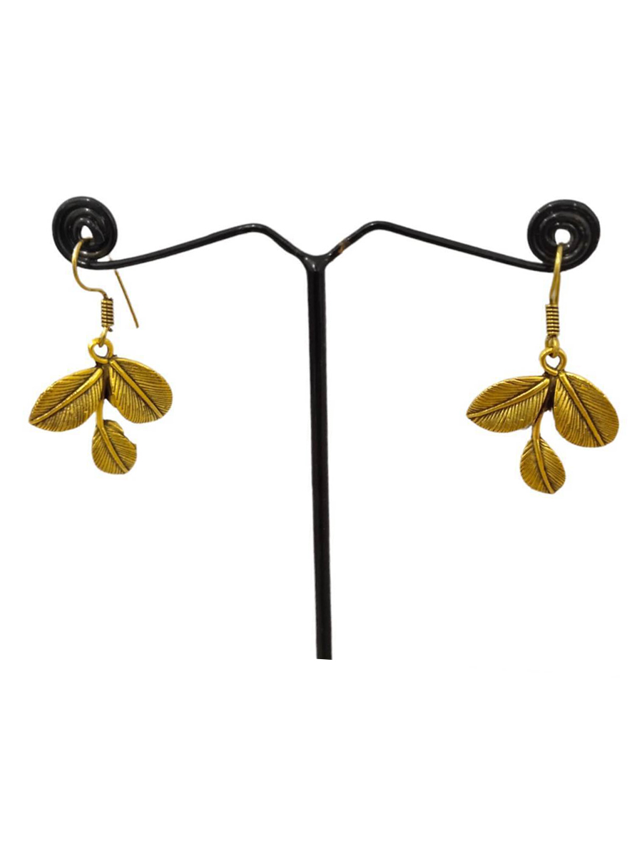 Pretty Filigree Leaf Short Drop Golden Plated Earrings Oxidized Fashion Jewelry