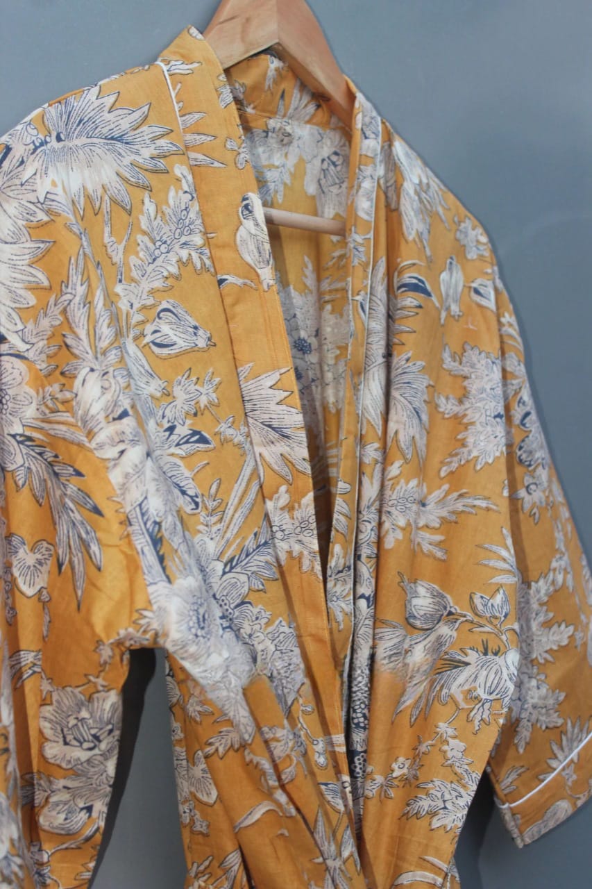 Cotton Kimono robes are perfect for lounging around the home or spa. Use our floral patchwork print robe as a cover up on the beach or after a dip in the pool. Add a luxury and boho feel to your bridal shower. Versatile, soft and luxurious, our 100% cotton kimono robes are printed with natural free dyes.