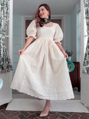 White Kurti Stitched Mini Dress Frock Heavy Bollywood Style Partywear Midi Dress