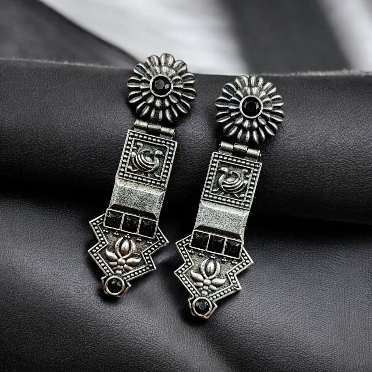 Black Unique Rustic Brass Stud Earring Silver Oxidised Bollywood Earring Set for Women