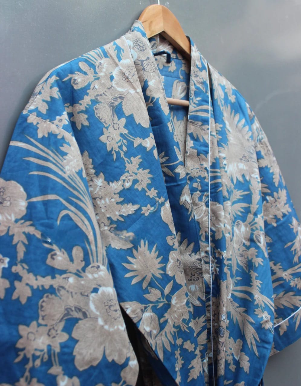 Cotton Kimono robes are perfect for lounging around the home or spa. Use our floral patchwork print robe as a cover up on the beach or after a dip in the pool. Add a luxury and boho feel to your bridal shower. Versatile, soft and luxurious, our 100% cotton kimono robes are printed with natural free dyes.
