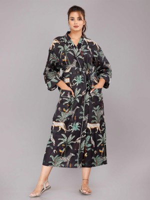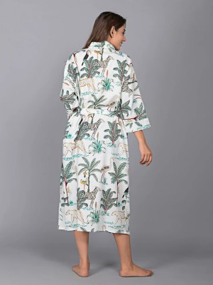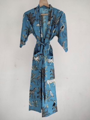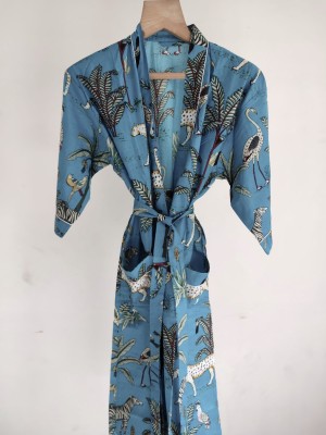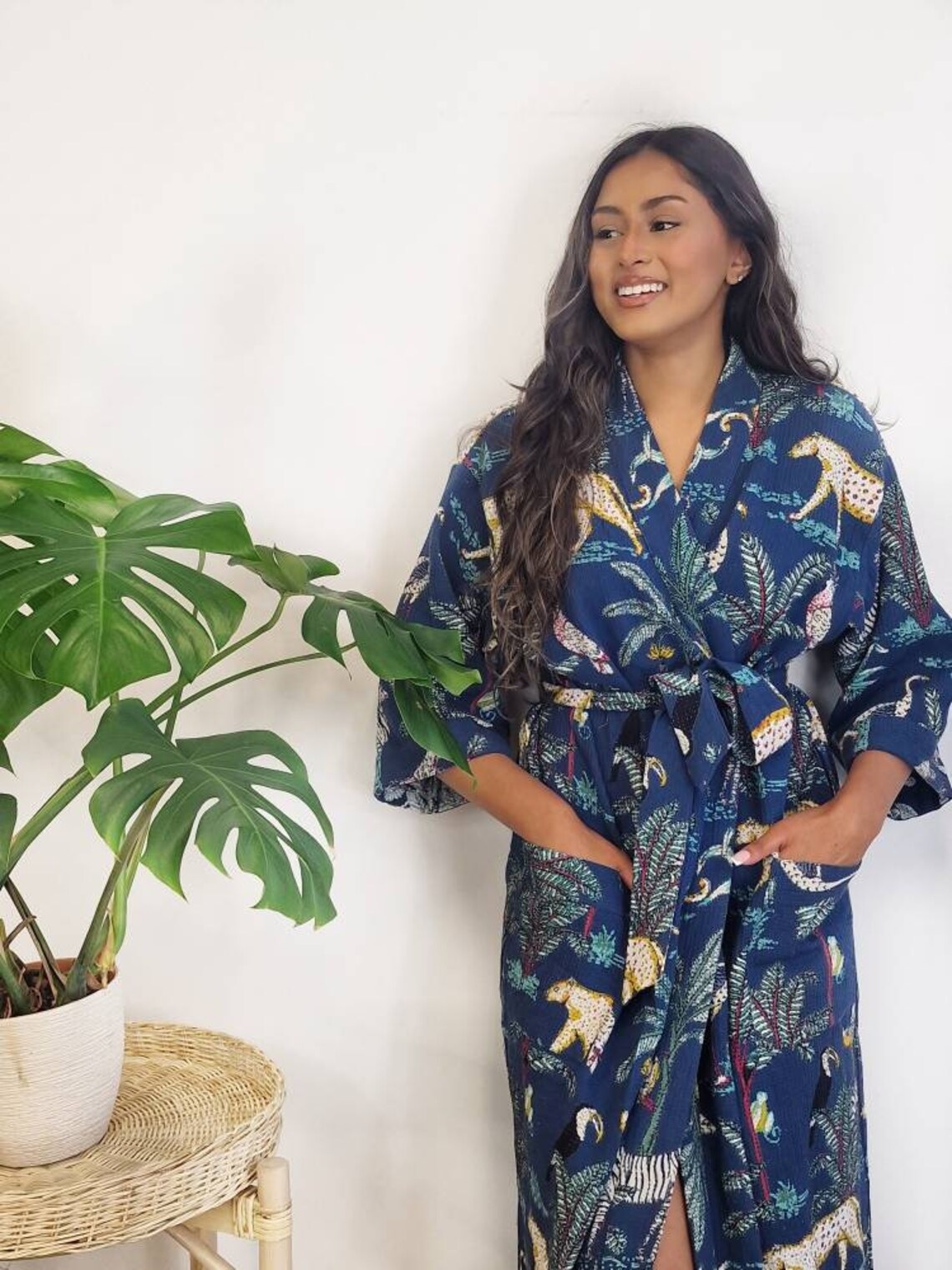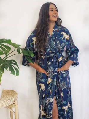 Navy Blue Safari Print Cotton Kimono Robes for Women Dressing Night Gown Unisex Beach Cover Bridesmaid Gifts