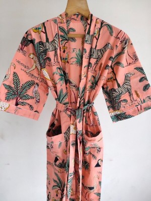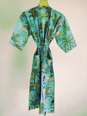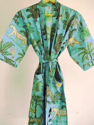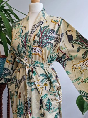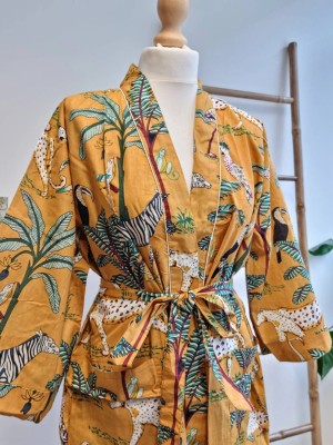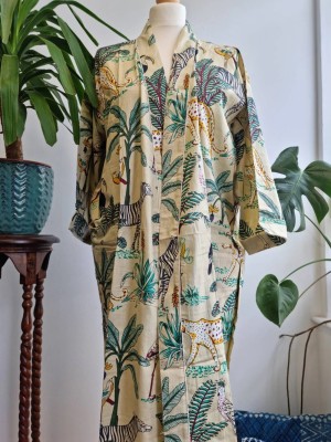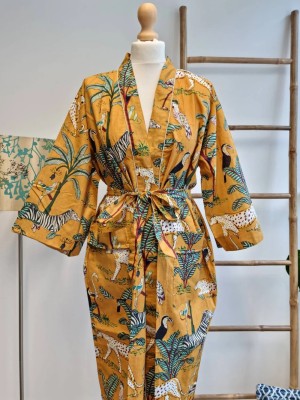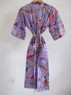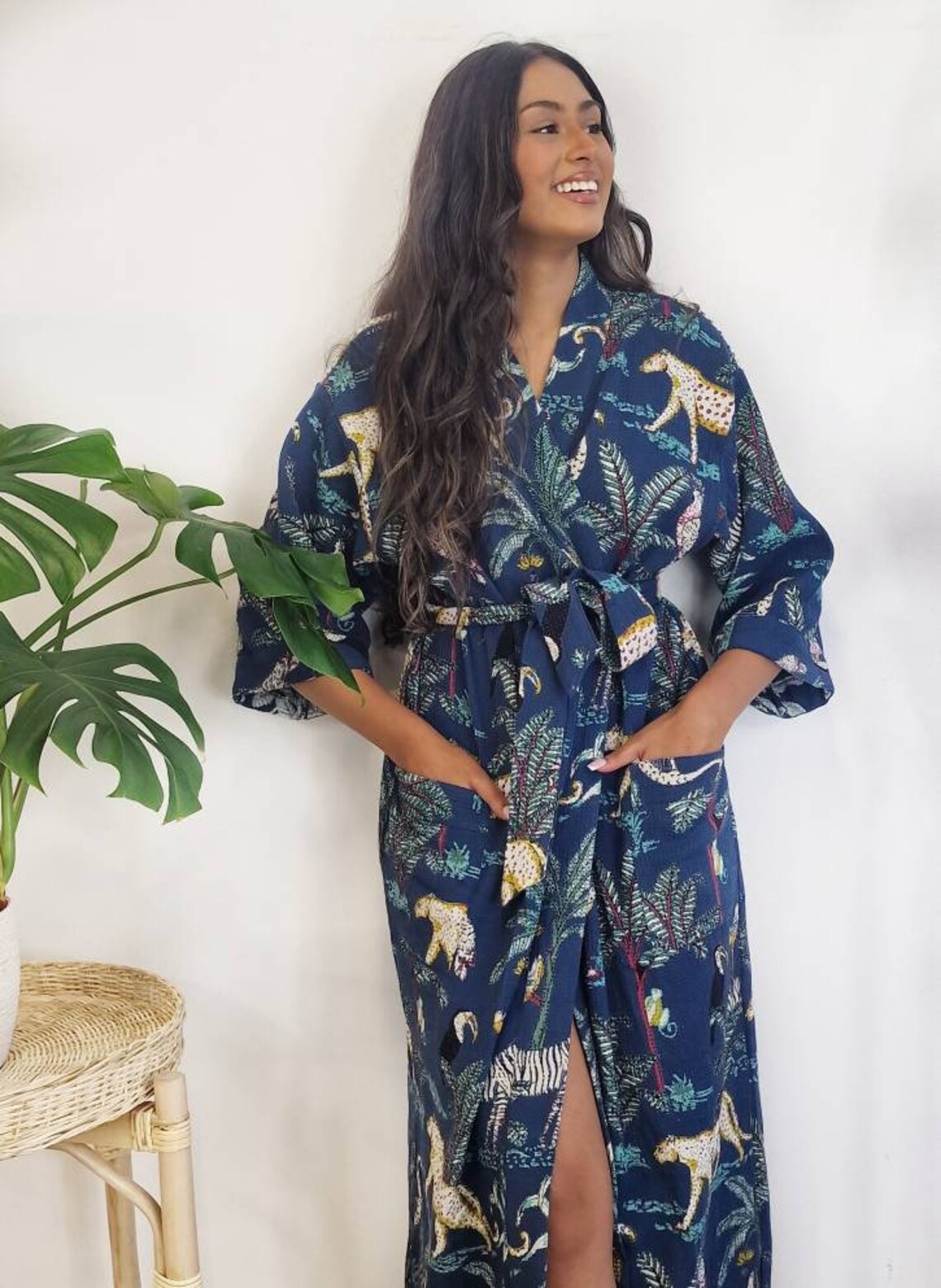 Cotton Kimono robes are perfect for lounging around the home or spa. Use our floral patchwork print robe as a cover up on the beach or after a dip in the pool. Add a luxury and boho feel to your bridal shower. Versatile, soft and luxurious, our 100% cotton kimono robes are printed with natural free dyes.