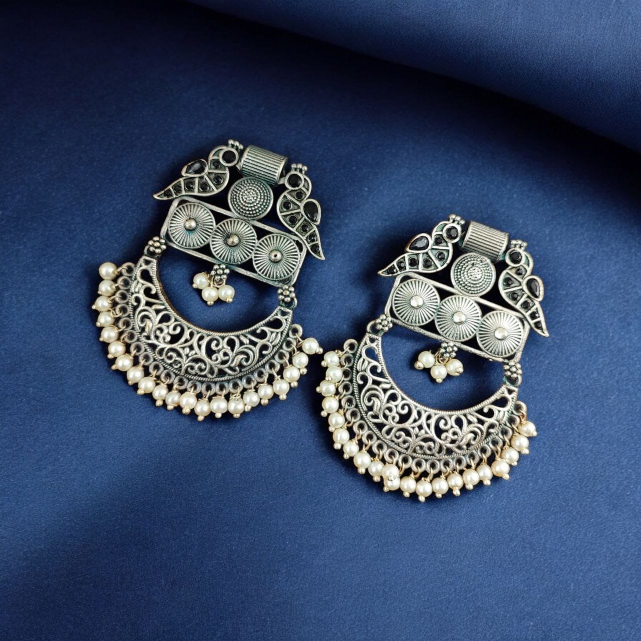 Ethnic Bird Design Traditional Indian Brass Stone Work Dangler Stud Earring Silver Oxidised Pearl Beads Drop