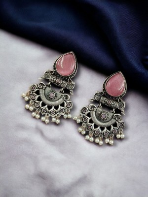 Babypink Antique Peacock Designer Brass Dangler Earring Silver Oxidised Bollywood Earring Jhumki Set