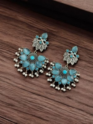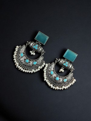Aqua Antique Peacock Designer Brass Dangler Earring Silver Oxidised Bollywood Earring Jhumki Set