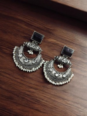 Black Antique Peacock Designer Brass Dangler Earring Silver Oxidised Bollywood Earring Jhumki Set