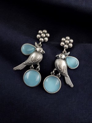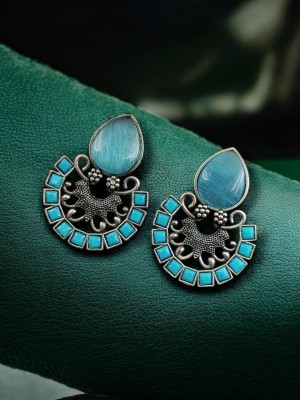 Blue Ethnic Indian Brass Monalisa Stone Work Stud Earring Silver Oxidised Pakistani Chandbali Earring Set