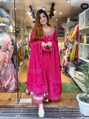 Pink Anarkali Gown Kurti Pant Dupatta Set Salwar Kameez