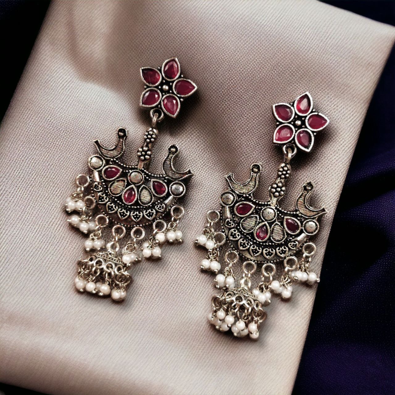 Stylish Designer German Silver Stone Work Dangler Earring Ethnic Chandbali Earring Set