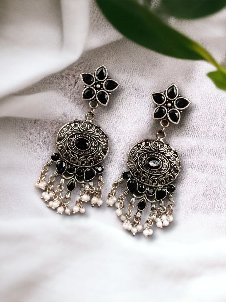 Black Gorgeous Designer Ethnic Earring Set German Silver Stone Work Dangler Earring for Girls