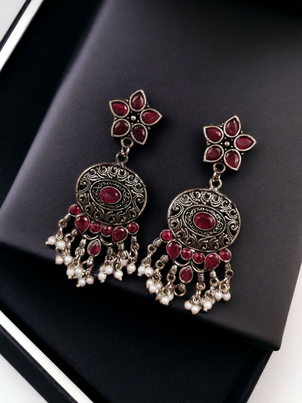 Gorgeous Designer Ethnic Earring Set German Silver Stone Work Dangler Earring for Girls