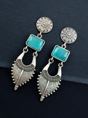Blue Gorgeous Designer Ethnic Earring Set German Silver Stone Work Dangler Earring for Girls