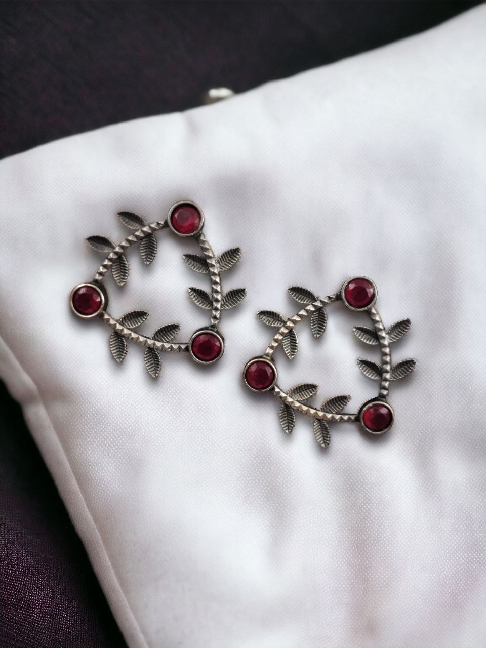 Red Antique Designer Leaf Pattered Stone Work Brass Stud Earring Gift for Her