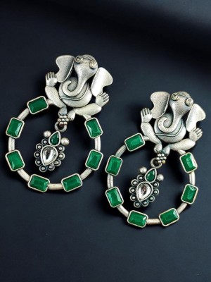 Green Gorgeous Designer Bird Stone Work Brass Stud Earring Gift for Her