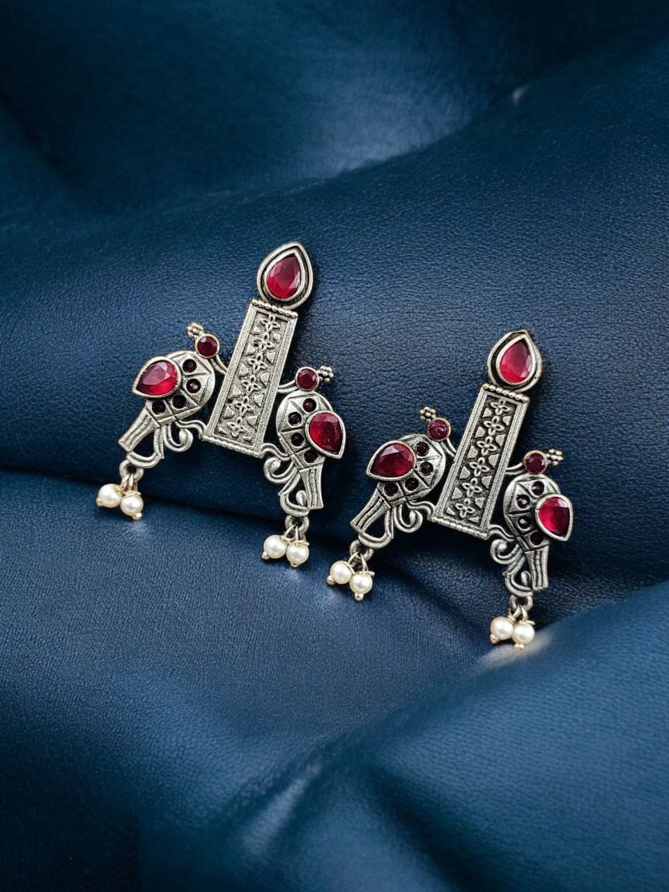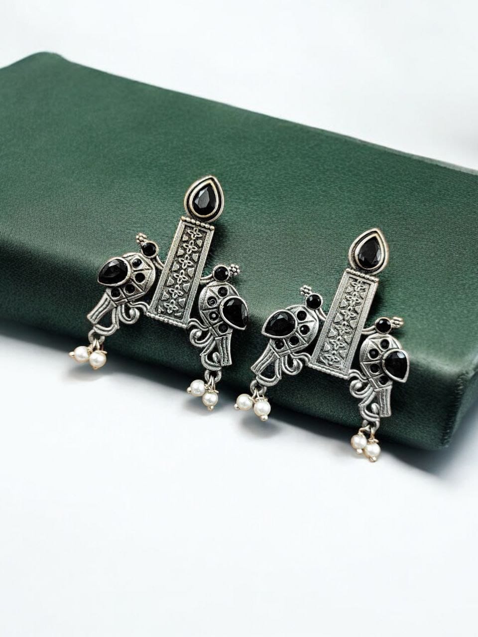 Black Antique Traditional Bird Designer Brass Earring Set Stone Work Pearl Beads Drop Earring for Women