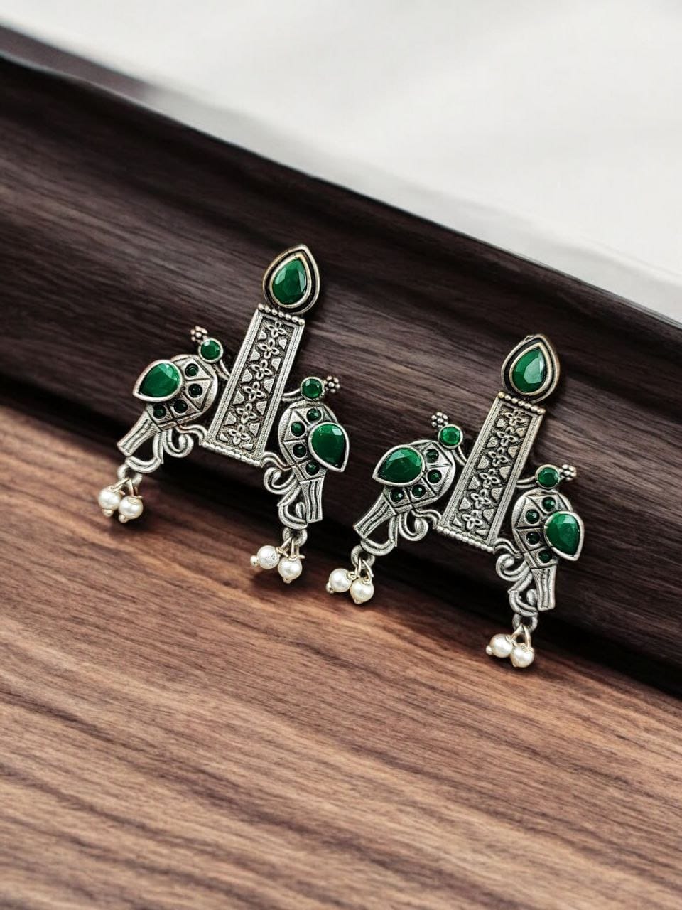 Green Antique Traditional Bird Designer Brass Earring Set Stone Work Pearl Beads Drop Earring for Women