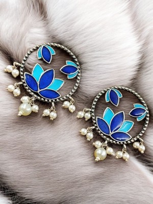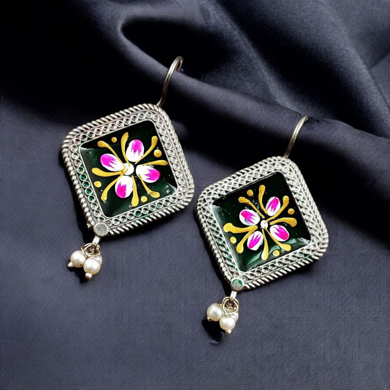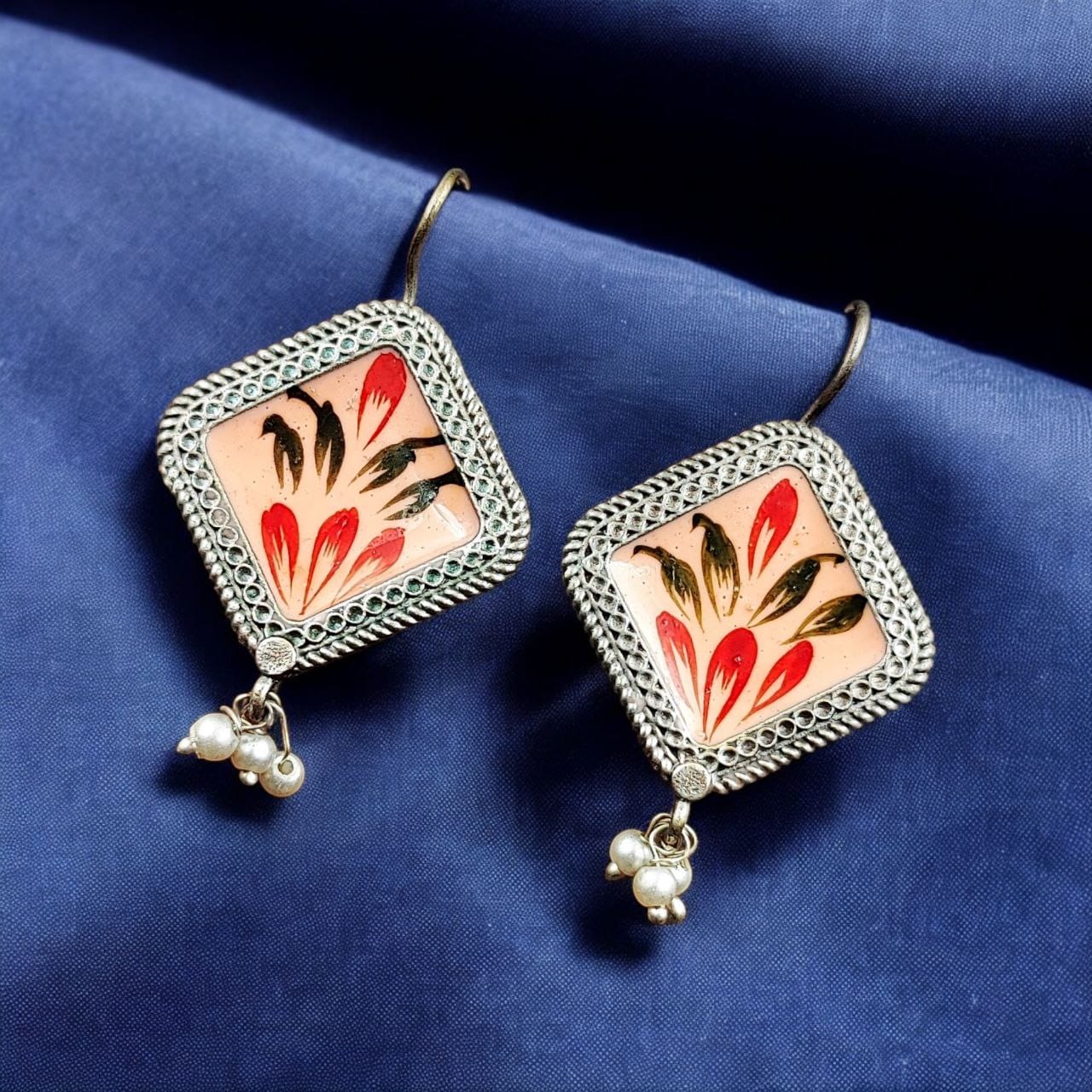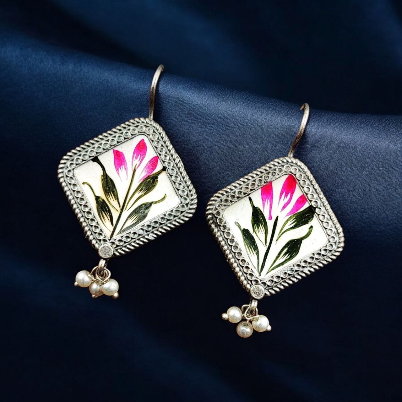 Beautiful Art Handcrafted Painted Hook Earring Silver Replica Handmade Pearl Beads Drop Earring