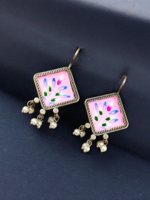 Babypink Unique Handmade Art Hand Painted Hook Earring Indian Oxidized Earring for Girls