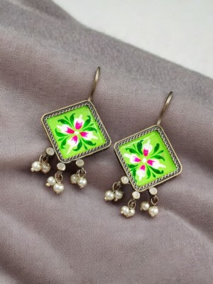 Green Unique Handmade Art Hand Painted Hook Earring Indian Oxidized Earring for Girls