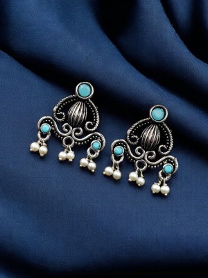 Turquoise Ethnic Indian Stone Work Silver Oxidized Earring Set Pearl Beads Stud Earrings for Girls