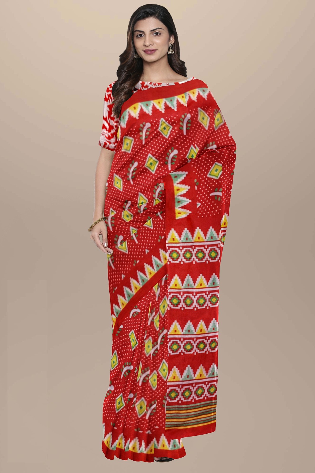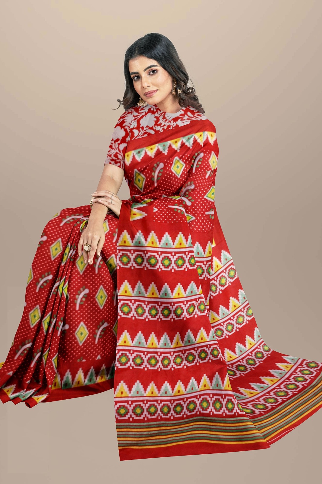 Red Color Printed Cotton Mulmul Mul Saree with Unstitched Blouse Piece