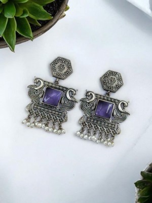 Amethyst Dual Tone Traditional Monalisa Stone Jhumki Earrings Pearl Beads Drop Pakistani Jhumka Set