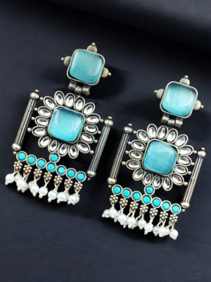 Aqua Dual Tone Traditional Monalisa Stone Jhumki Earrings Pearl Beads Drop Pakistani Jhumka Set