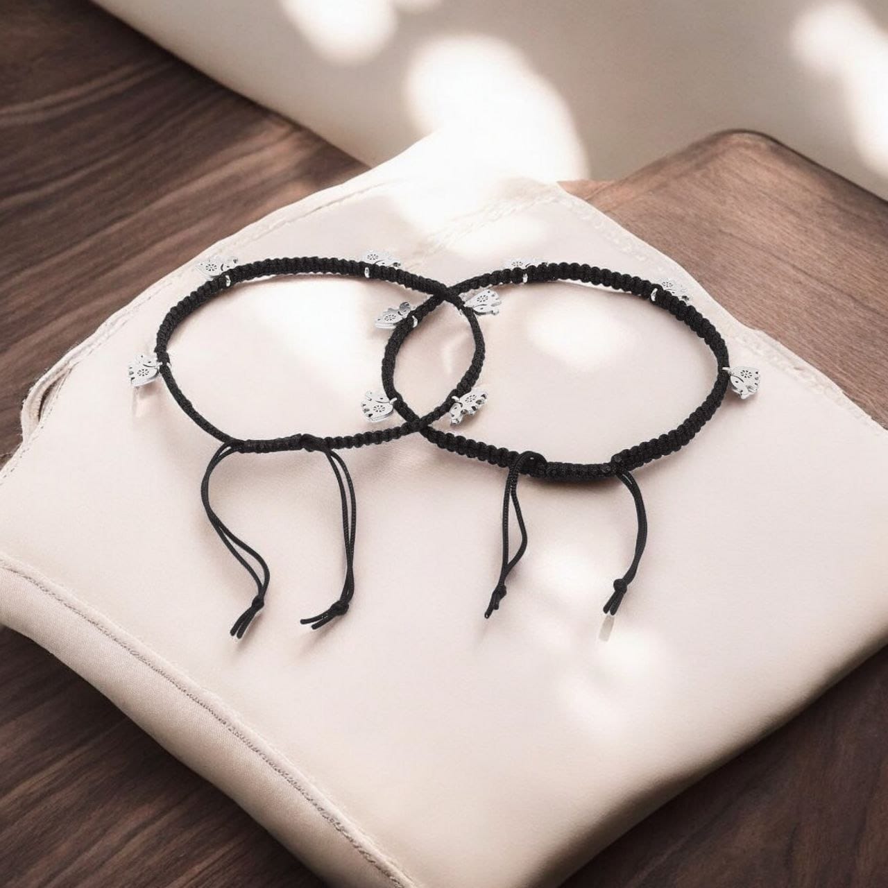 Elegant Elephant Charms Black Thread Anklet in Silver Replica - Best for Dailywear