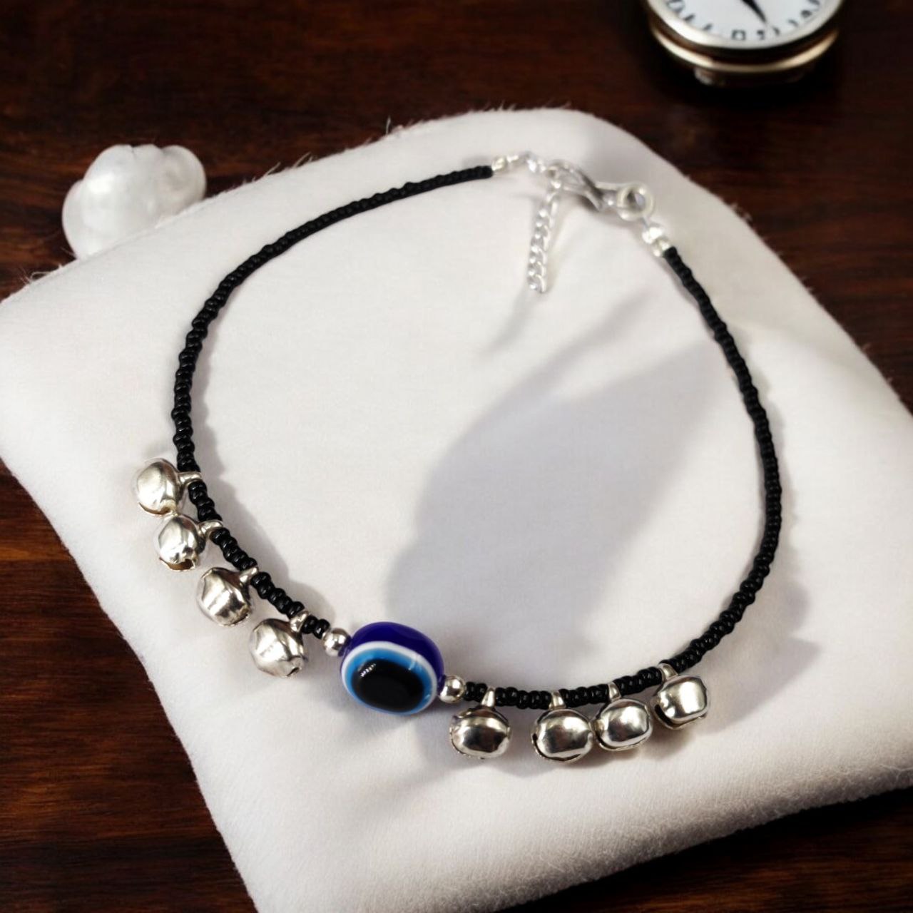 Trendy Ghunghru Anklets in Oxidised Finish with Evil Eye Charm Anklet for One Leg